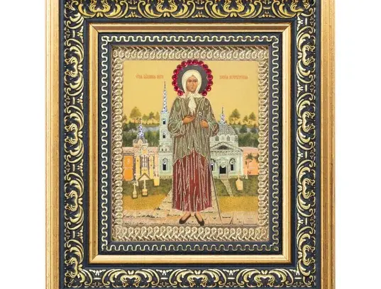 Каноническая икона святой блаженной Ксении Петербургской — это точная копия иконы, написанной ко дню прославления святой Ксении в 1988 году и хранящейся в её часовне на Смоленском православном кладбище. Первый молебен святой блаженной Ксении Петербургской был совершен именно перед этим образом вместе с патриархом Алексием II — он был одним из инициаторов прославления святой Ксении. С этой иконой в день прославления святой был совершён первый крестный ход.