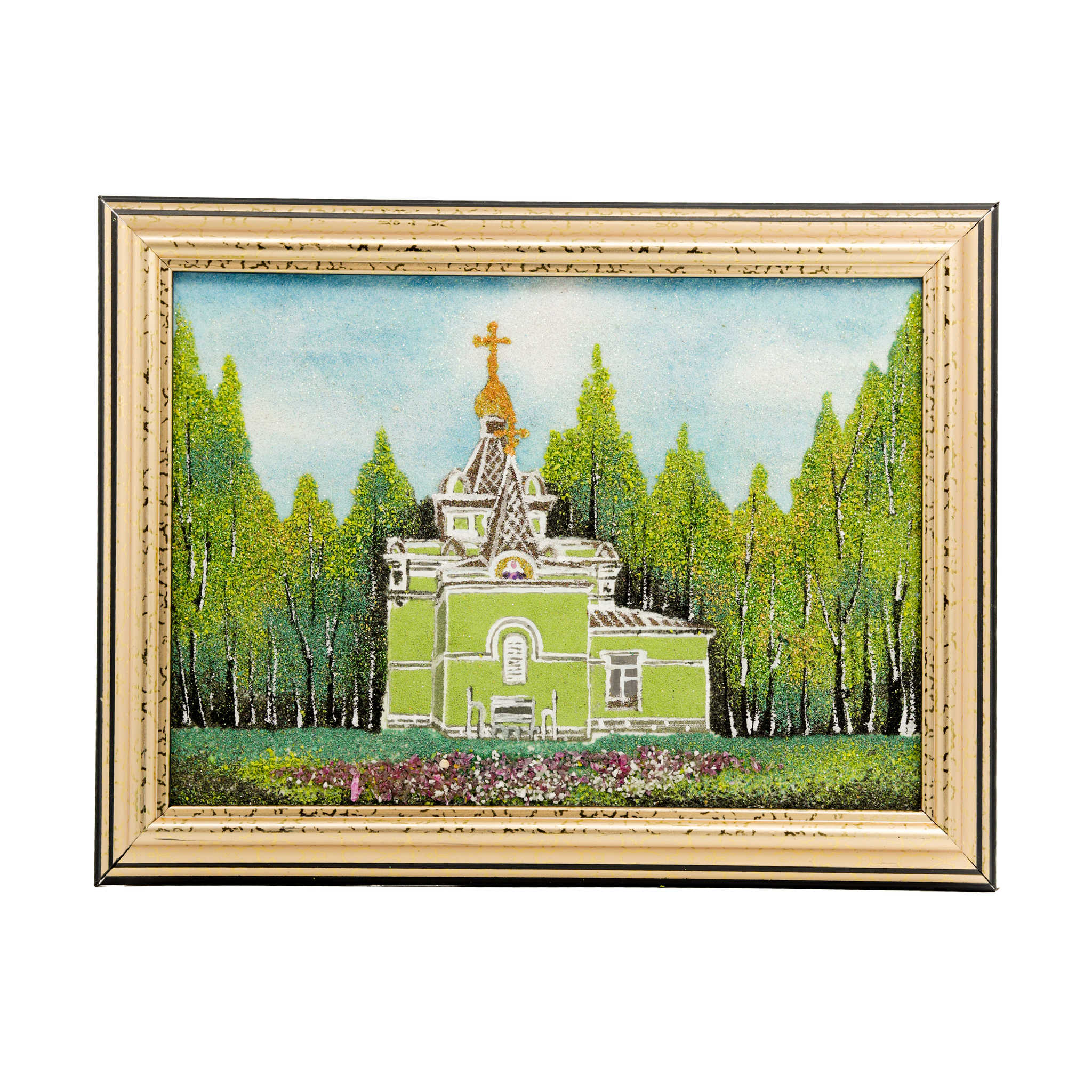 Картина выполнена из разноцветной мраморной крошки и помещена в пластиковую раму. Это авторская ручная работа. Каждая картина, при схожести сюжета, отличается живописными деталями.