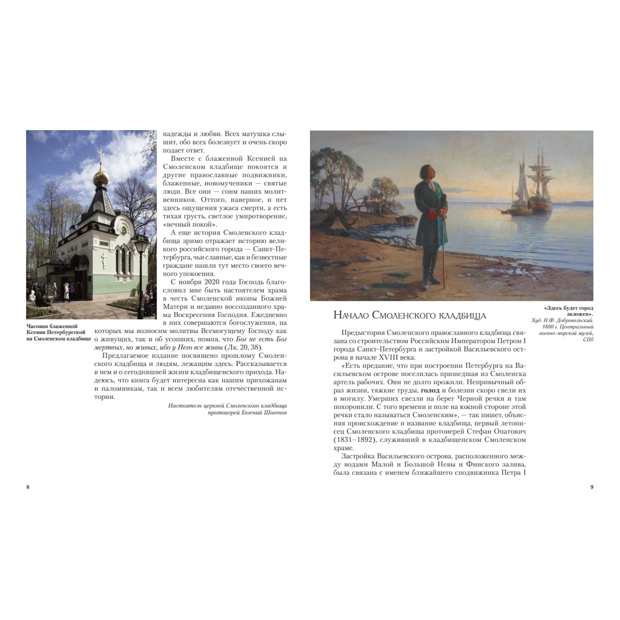 Обитель блаженной Ксении. Смоленское православное кладбище Санкт-Петербурга и его храмы / Составитель протоиерей Евгений Шогенов. – Санкт-Петербург: Приход храма в честь Смоленской иконы Божией Матери на Васильевском острове; Москва: Отчий дом – 304 стр., илл. ISBN 978-5-6054181-1-5