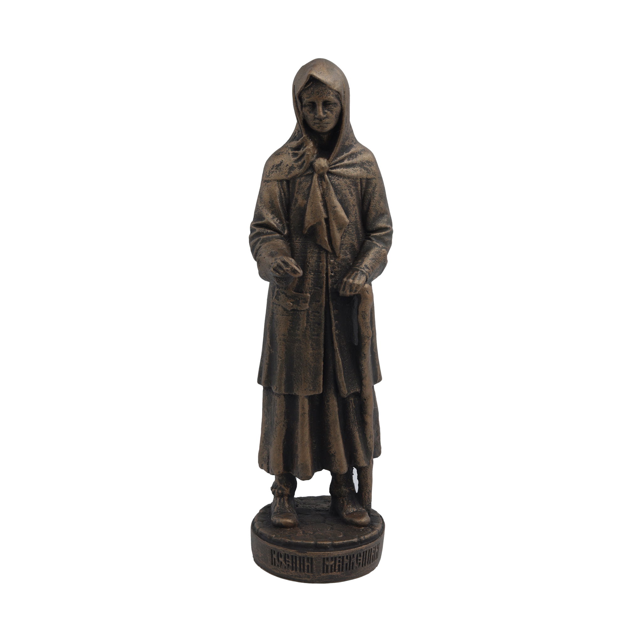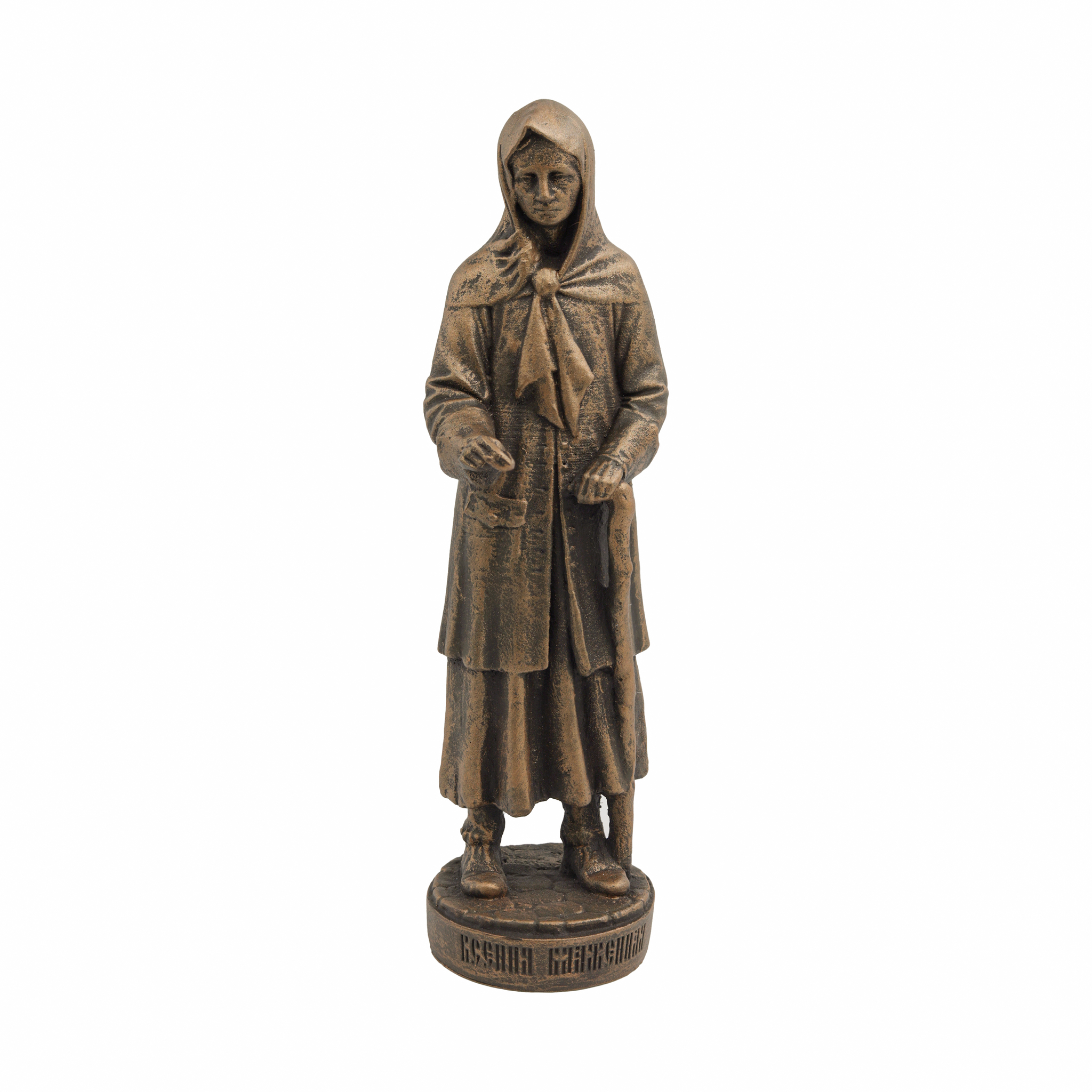 Статуэтка святой блаженной Ксении Петербургской — это точная копия памятника небесной покровительнице Санкт-Петербурга, открытого у ее часовенки в честь 35-й годовщины прославления Ксении Блаженной во святых. Торжественное освящение скульптуры совершил митрополит Санкт-Петербургский и Ладожский Варсонофий 6 июня 2023 года. Авторам памятника Вадиму Сазонову и Николаю Иванову удалось воссоздать в металле удивительный образ великой русской женщины, которая всех принимает и понимает, утешает и помогает. Ксения Блаженная словно встречает и благословляет всех, кто обращается к ней.